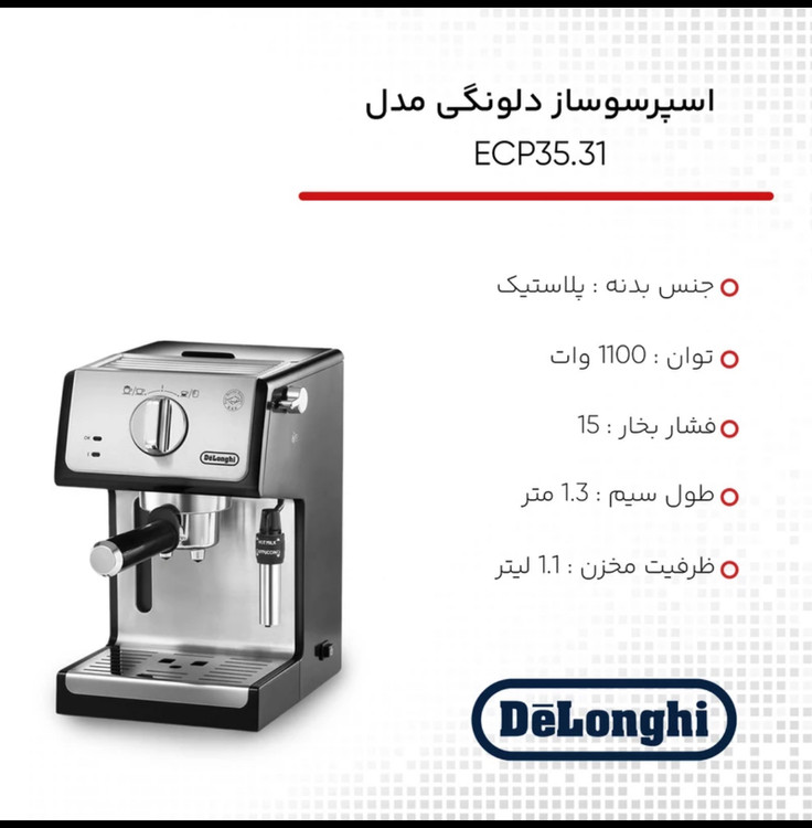 قهوه ساز35.31 دلونگی از مدلهای ساده و کاربردی برای مصارف خانگی است.